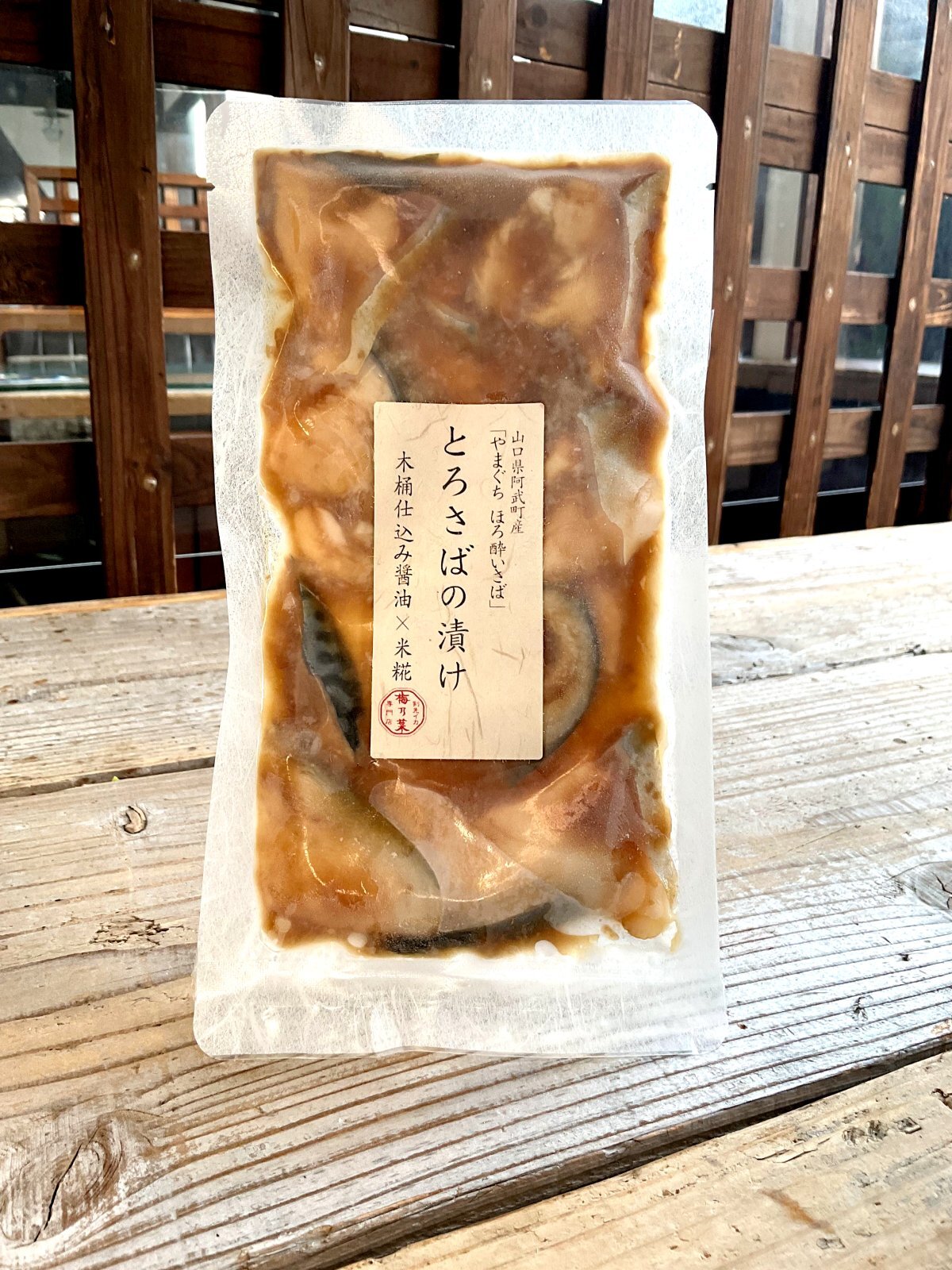 | 原材料 | 真さば(山口県阿武町産)、醤油【木桶仕込み醤油】(大豆・小麦を含)、 純米本味醂、米、純米大吟醸酒、純米酢、 胡麻油(玉搾り金胡麻油)、昆布、炒り子 /アルコール |